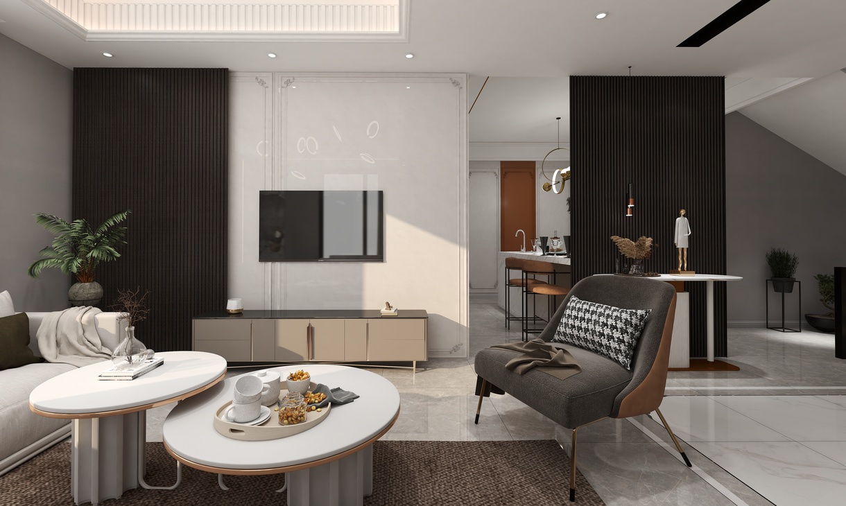 每個空間至少2張效果圖+1張全案全景圖展示,方案描述完整,所有空間需命名。