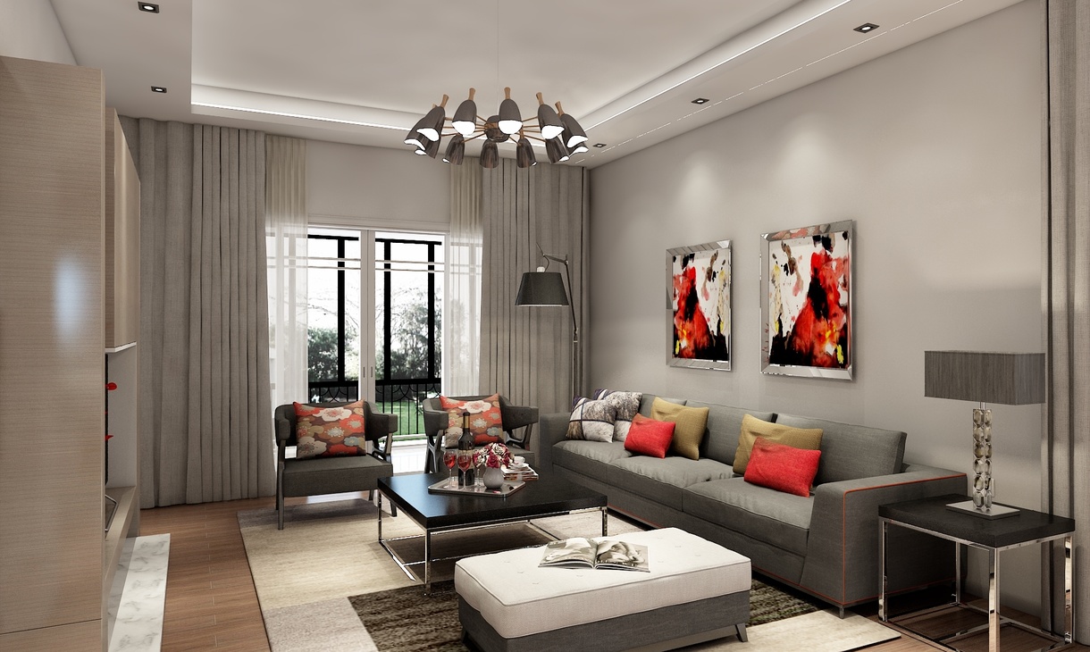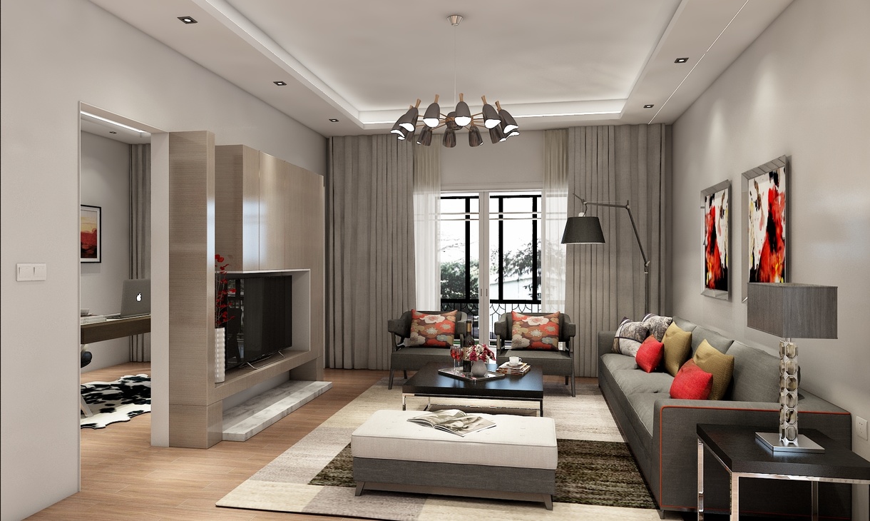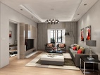 客廳是會客區(qū)域,寬敞實用,給人一種簡約休閑的感覺,沙發(fā)區(qū)的地毯更具生活化,電視柜簡潔明了,現(xiàn)代時尚。