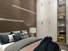 合理利用空間布局,白藍(lán)搭配著衣柜,床頭放些簡單的裝飾畫來點綴