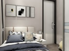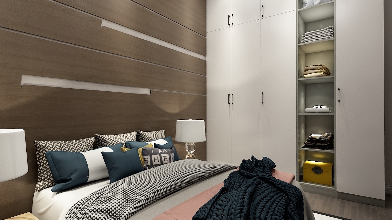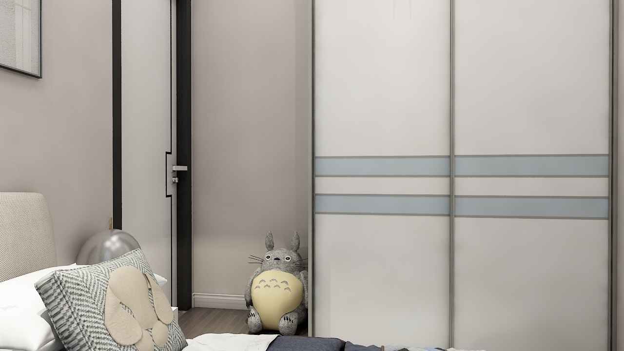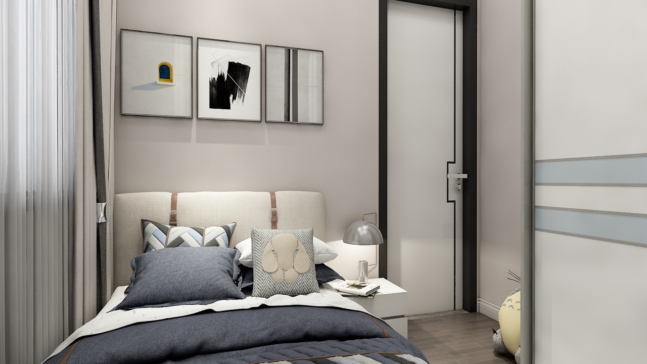 主臥沒有過多的裝飾,潔白的白色門板搭配淺灰的柜身,軟裝和飾品作為點綴