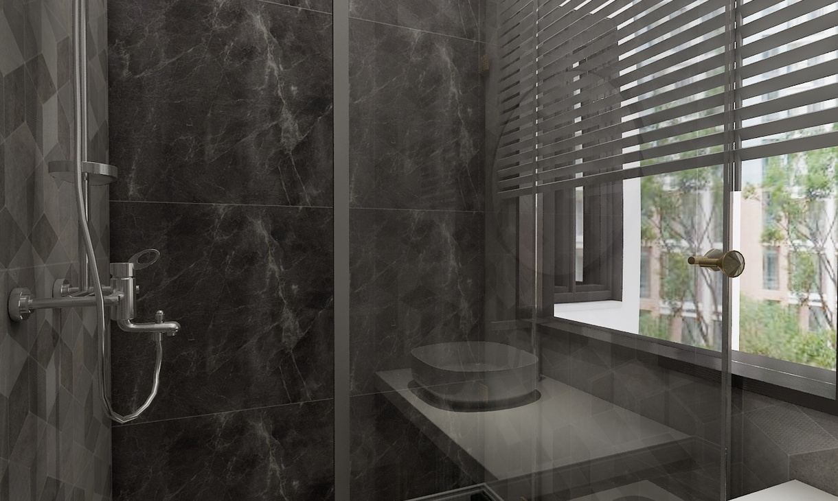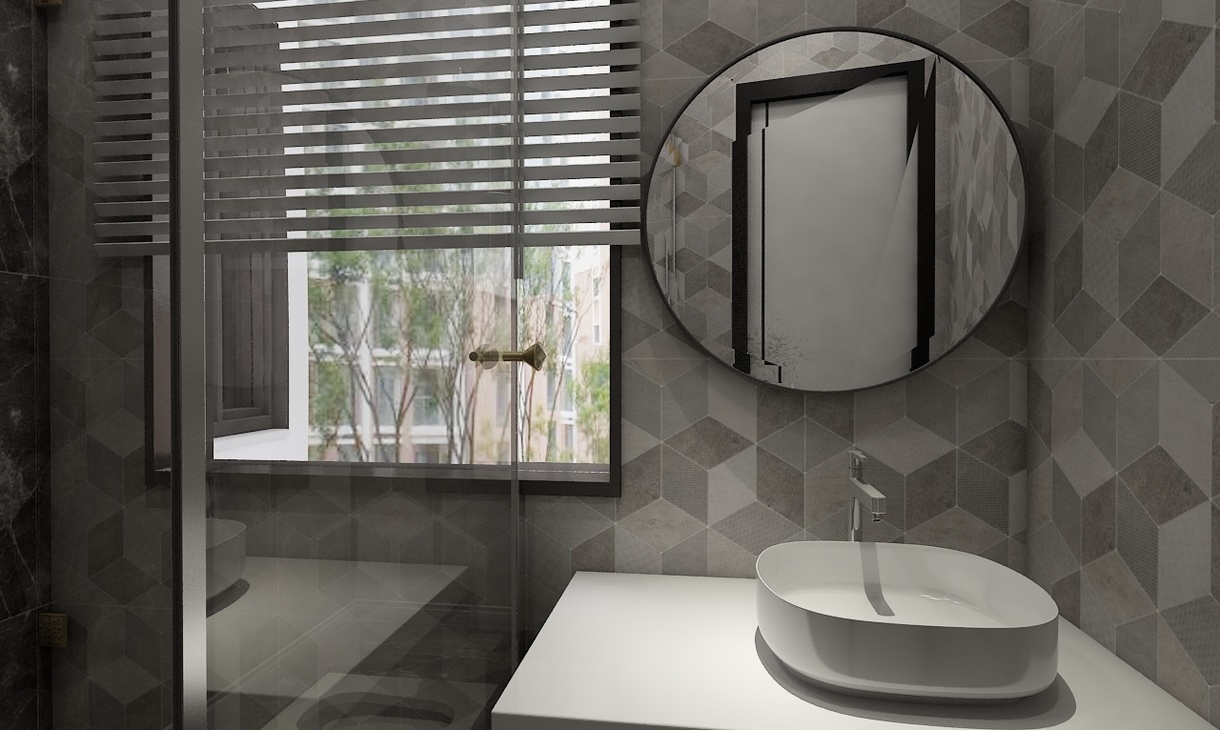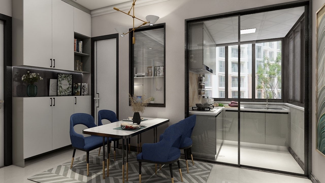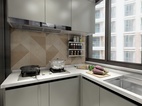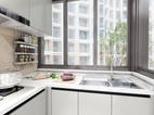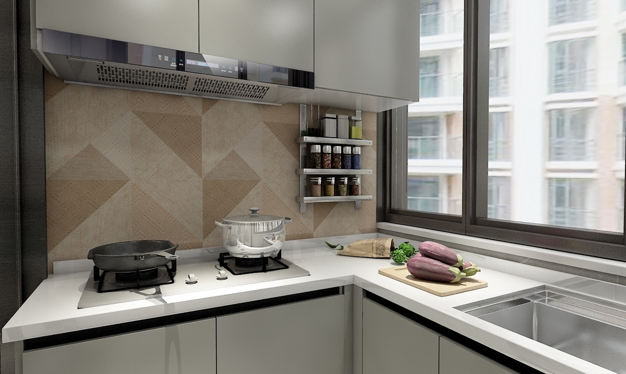 小櫥柜也要滿足黃金三角,洗切煮一氣呵成,簡潔大方,墻磚的活躍