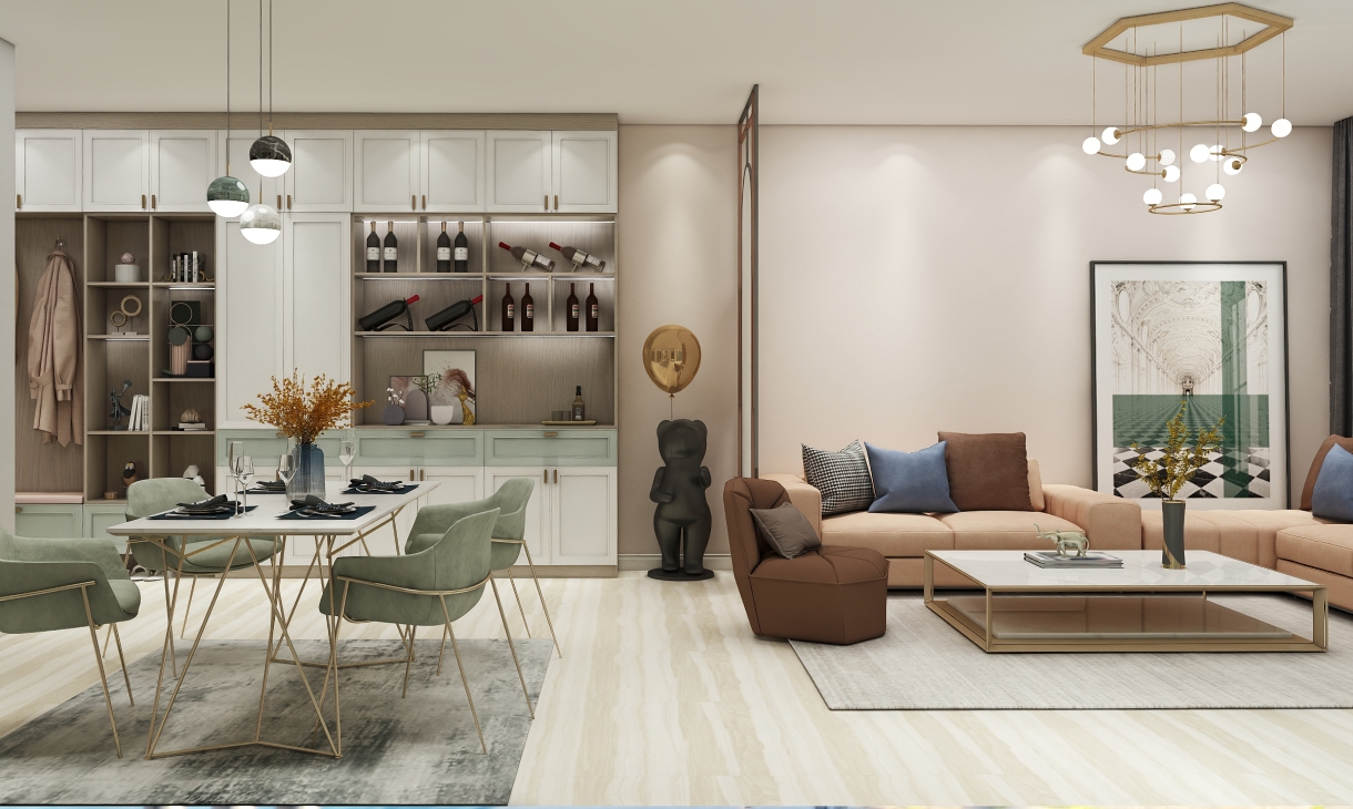 每個空間至少2張效果圖+1張全案全景圖展示,方案描述完整,所有空間需命名。