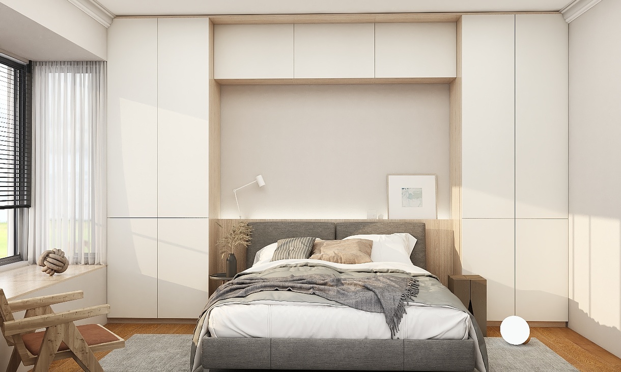 不動原有精裝格局與硬裝,用定制家具與軟裝協(xié)調空間