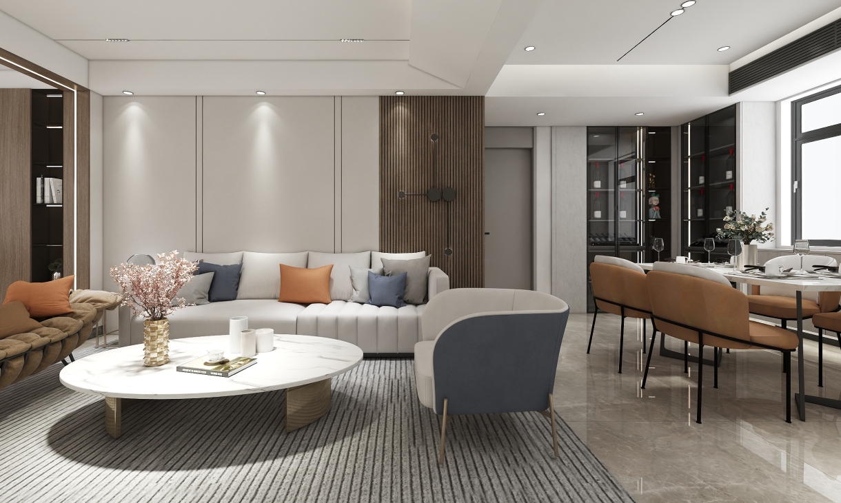 每個空間至少2張效果圖+1張全案全景圖展示,方案描述完整,所有空間需命名。