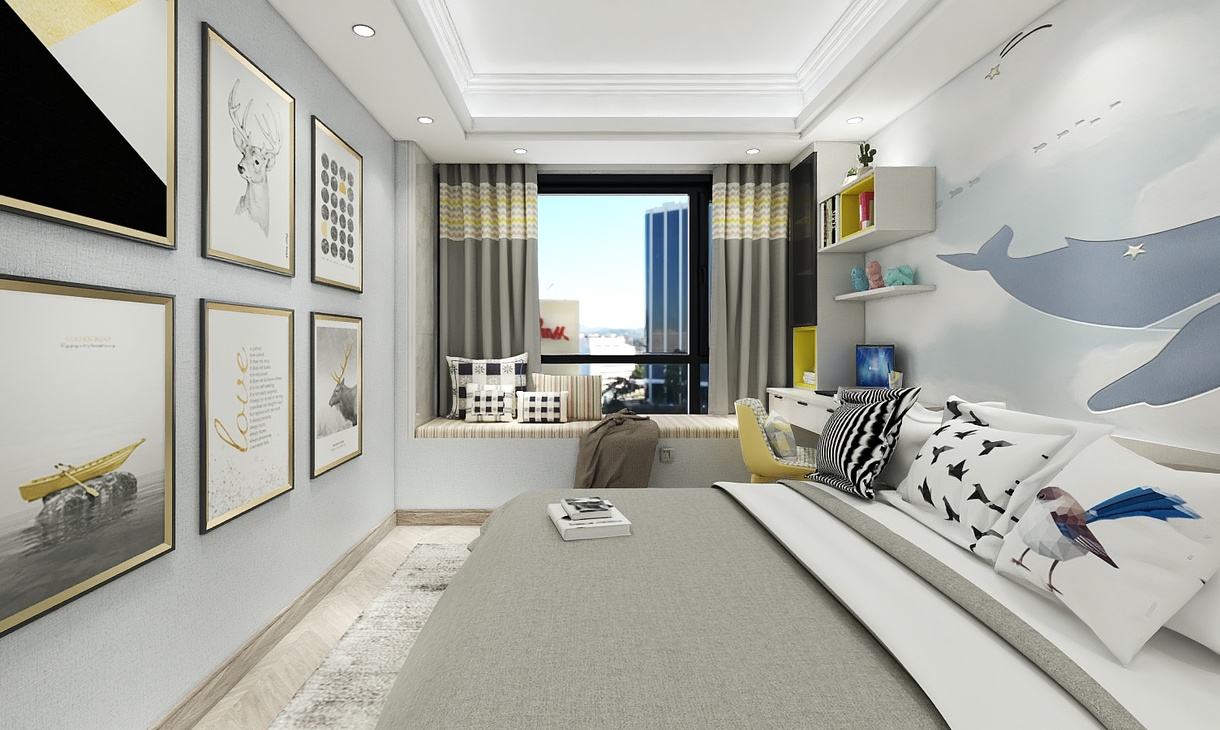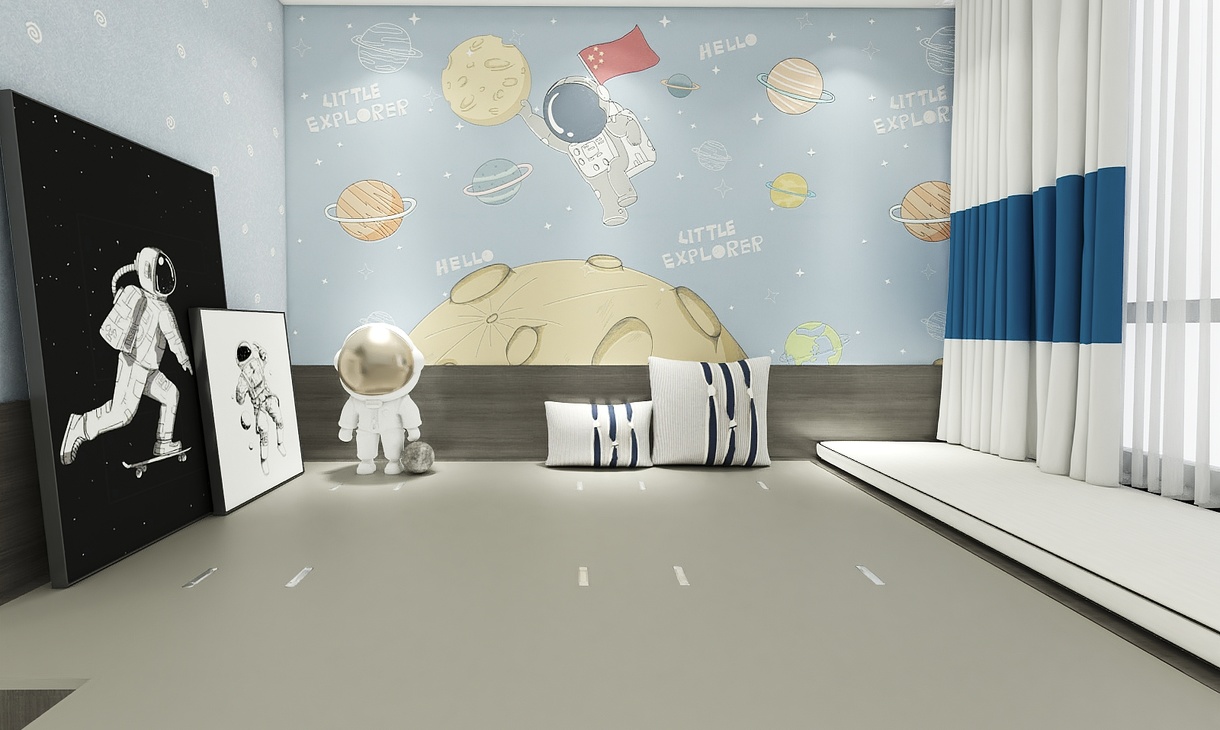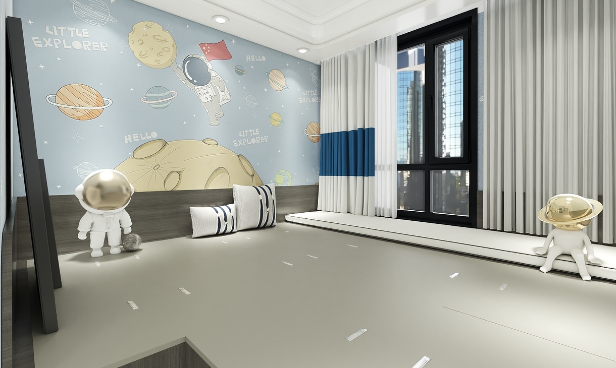 效果圖:全屋概覽效果圖、客廳效果圖、餐廳效果圖、廚房效果圖、兒童房效果圖、主臥效果圖