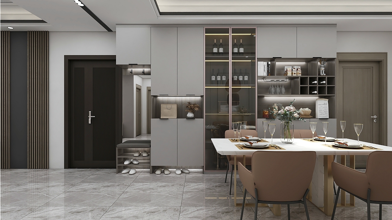 每個(gè)空間至少2張效果圖+1張全案全景圖展示,方案描述完整,所有空間需命名。