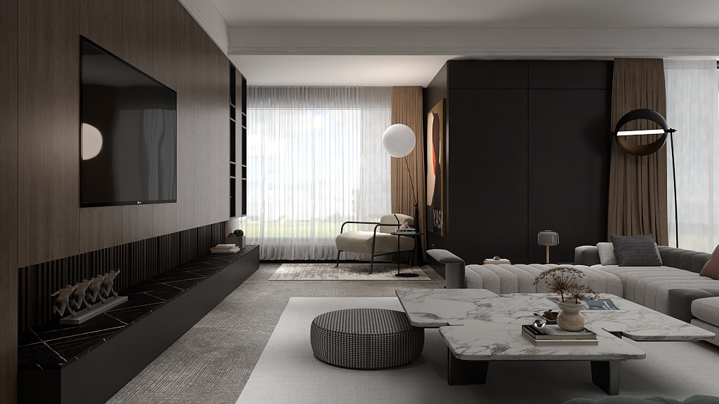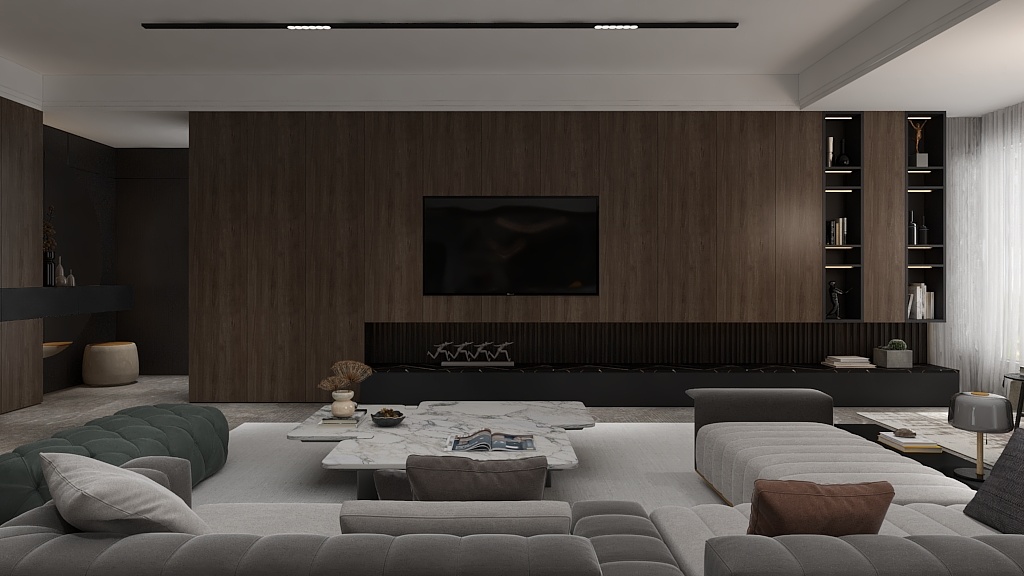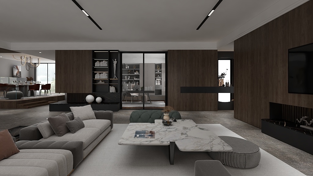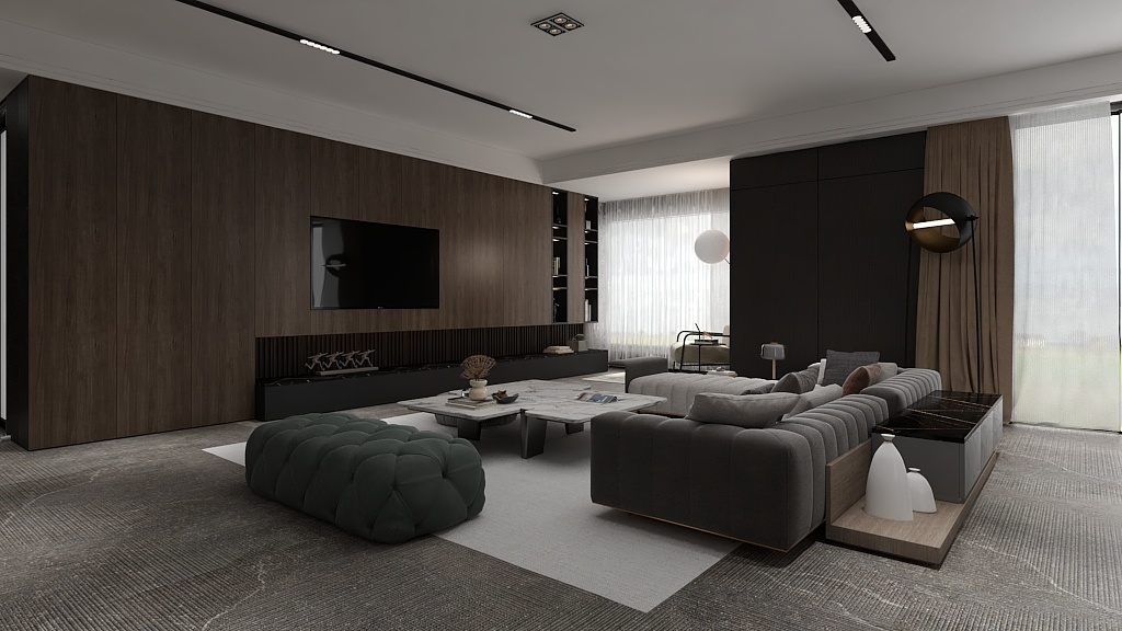 本宅面積為268平,是一個輕奢風格豪宅,融入了各種美學設計理念,打造出了一個奢華優(yōu)雅的現(xiàn)代居住空間??蛷d的色調(diào)有沖擊力,通過落地窗來增加空間整體采光,墻體采用護墻板及線條元素裝飾,增加整體空間延伸感,讓空間看上去更大氣,也讓空間有了更多點綴。