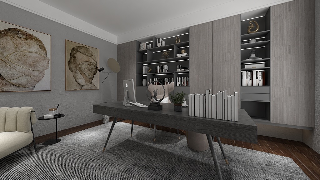 書房的墻面裝飾弱化,這種顏色搭配讓空間有了更多的主次感,也讓空間看上去更加大氣有氛圍,空間整體色調(diào)和諧搭配方面很有高級感。
