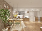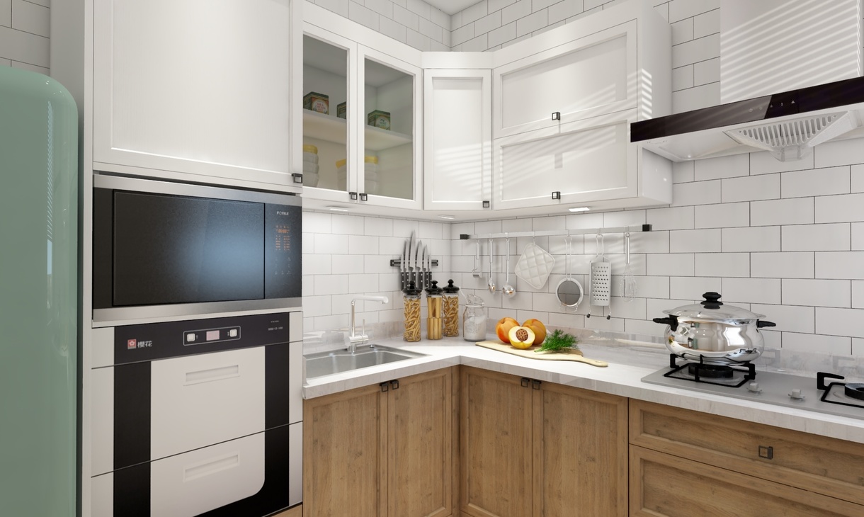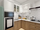 廚房,白色工字磚和大理石臺面搭配橡木色門板的櫥柜,使整個廚房顯得干凈、整潔而又不失溫馨。