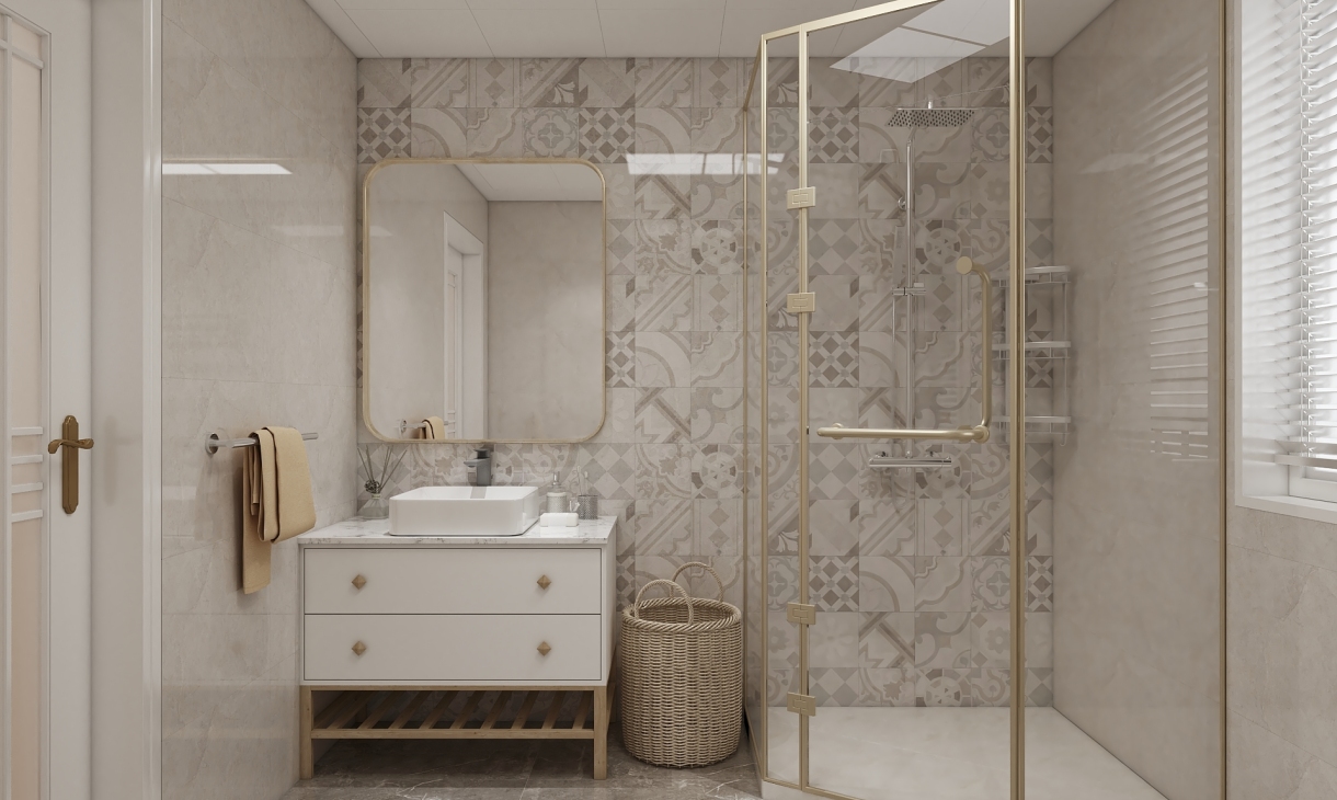衛(wèi)生間花磚的運用使整個空間層次鮮明
