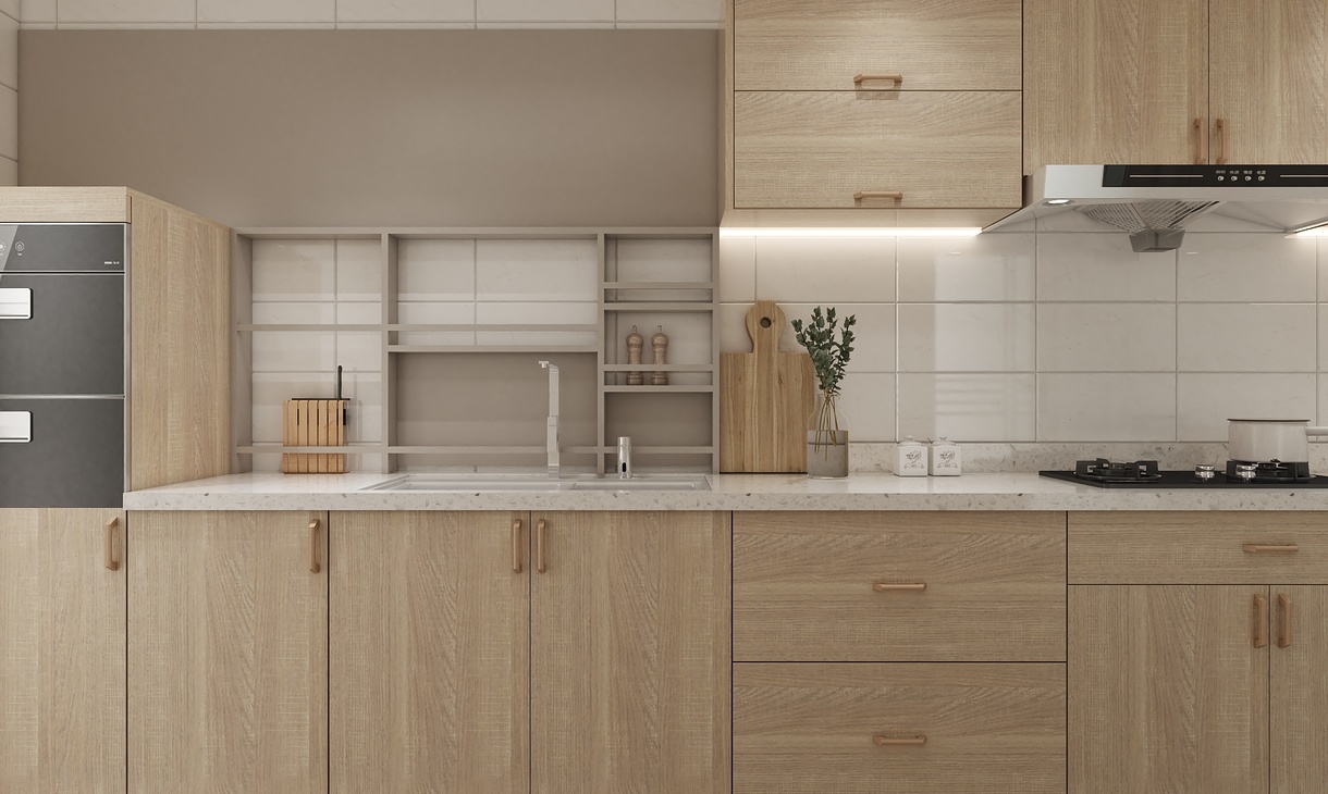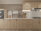 北歐風的廚房設(shè)計少不了原木色與白色瓷磚的搭配,北歐感十足