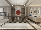 色彩上,以其經(jīng)典的配色體系.紅、白、黑、金穿插交合。呈現(xiàn)了豐富的室內(nèi)空間表情、時(shí)尚與經(jīng)典的碰撞、文麥與人文的結(jié)構(gòu)、都賦予了室內(nèi)空間的另外元素。 形體上。吊頂和地面以“回”字型結(jié)構(gòu),上下呼應(yīng)、豐富了原空間結(jié)構(gòu)的呆板
