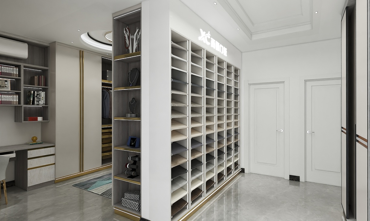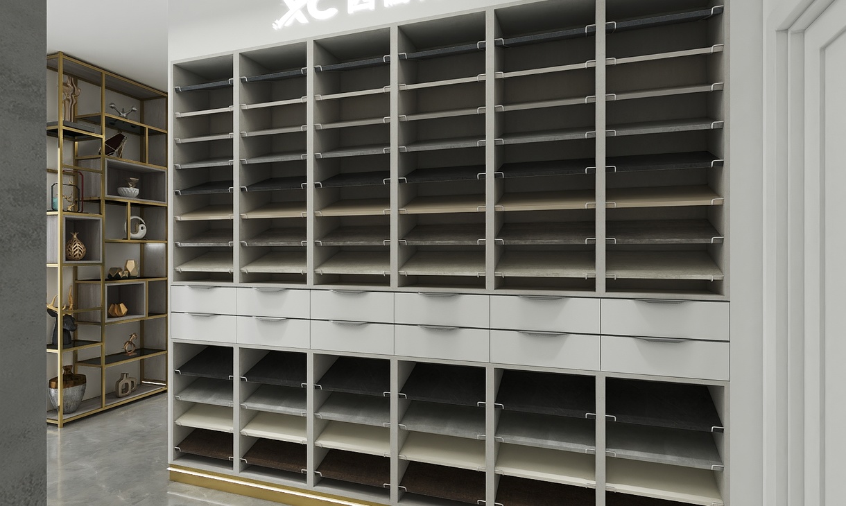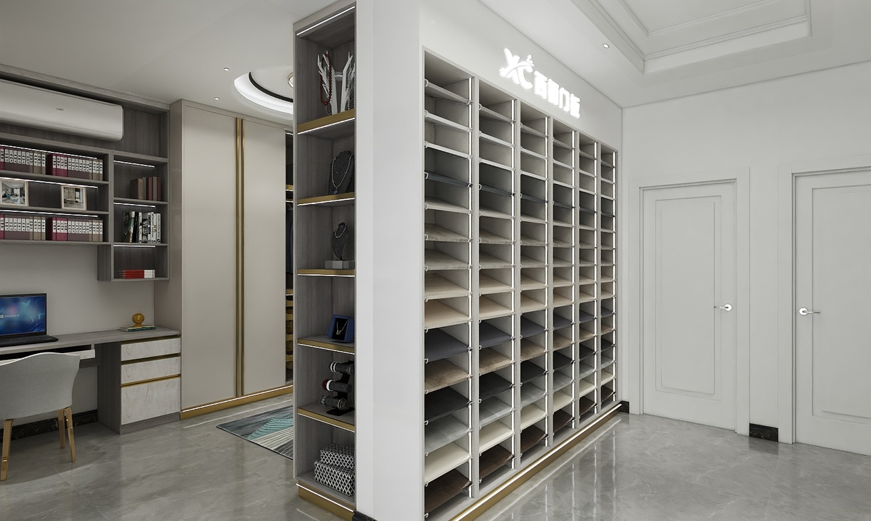 為了整體協(xié)調(diào)美觀,空調(diào)位置柜子也做到頂,利用每一面墻做好產(chǎn)品多樣性的展示