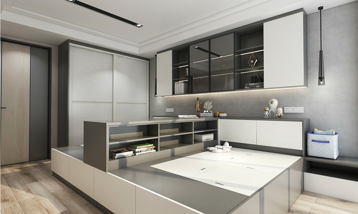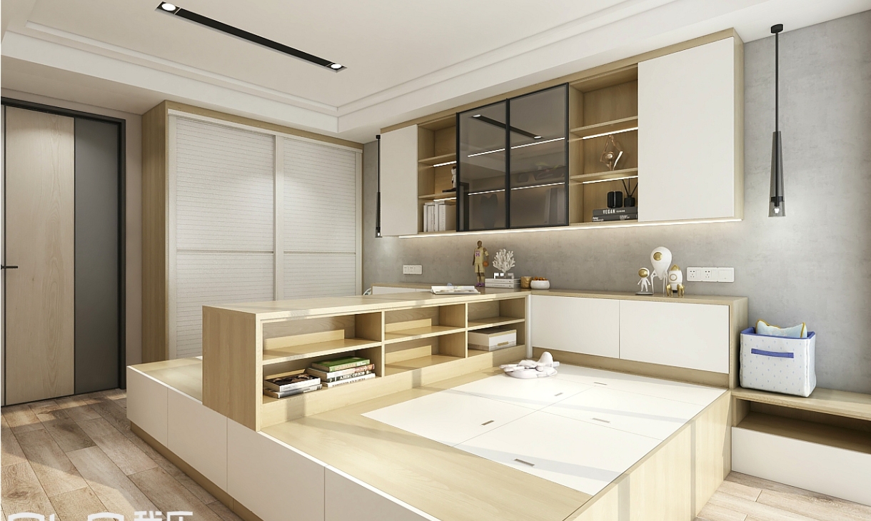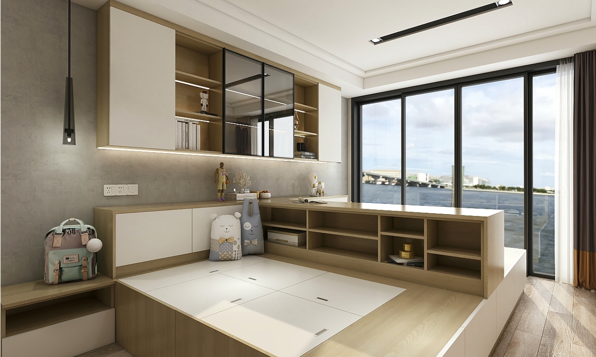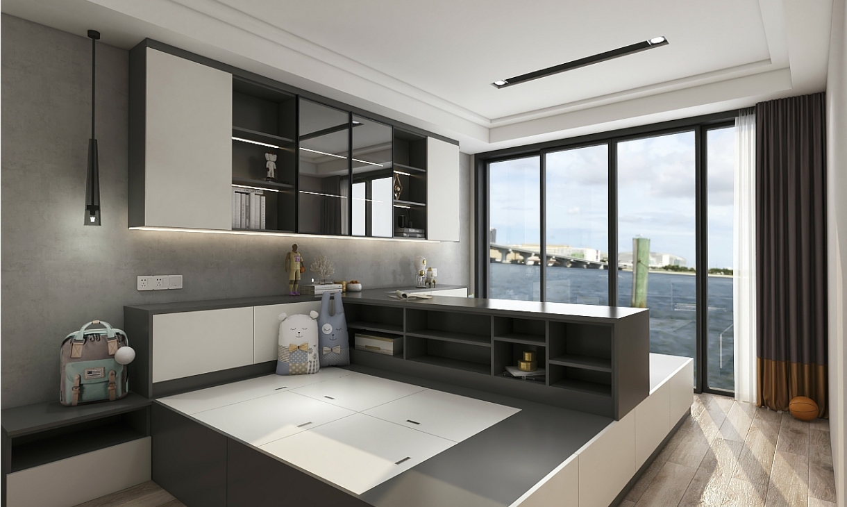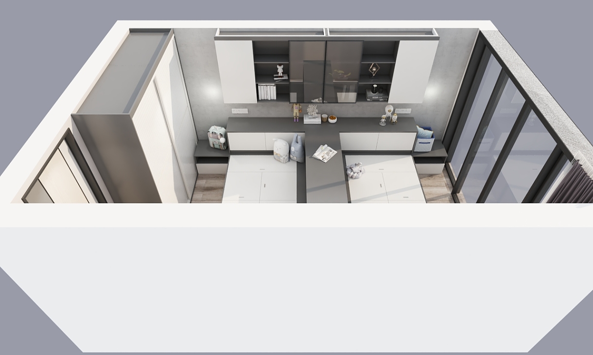 兩種色彩搭配,滿足兩個孩子的睡眠、收納、學習及展示!