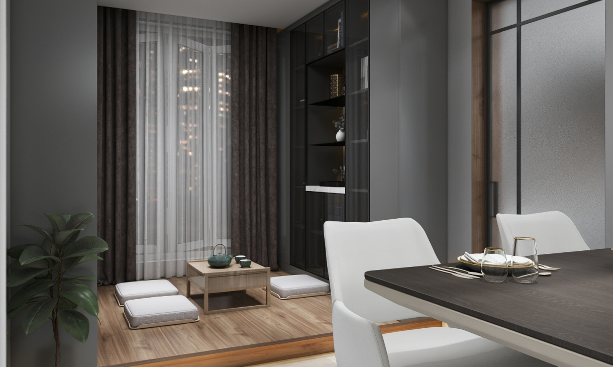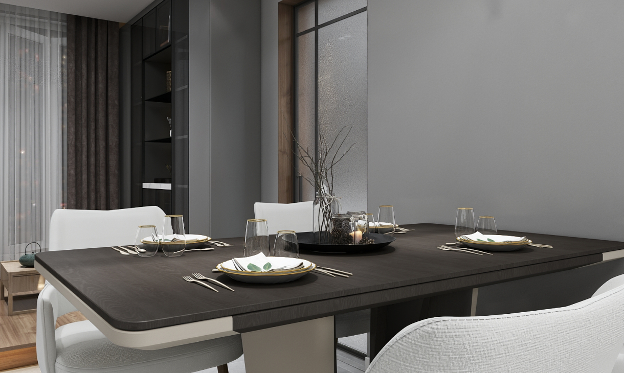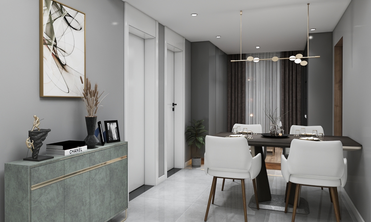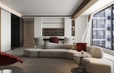 以黑白灰為主色調(diào),在充分挖掘原戶型廚房、客廳南北通透自然采光屬性的前提下,去繁就簡(jiǎn)搭配低飽和度現(xiàn)代極簡(jiǎn)小體量家具,還原最原始的內(nèi)建筑空間感。
