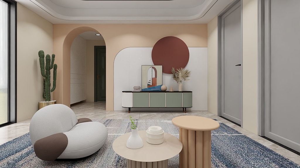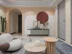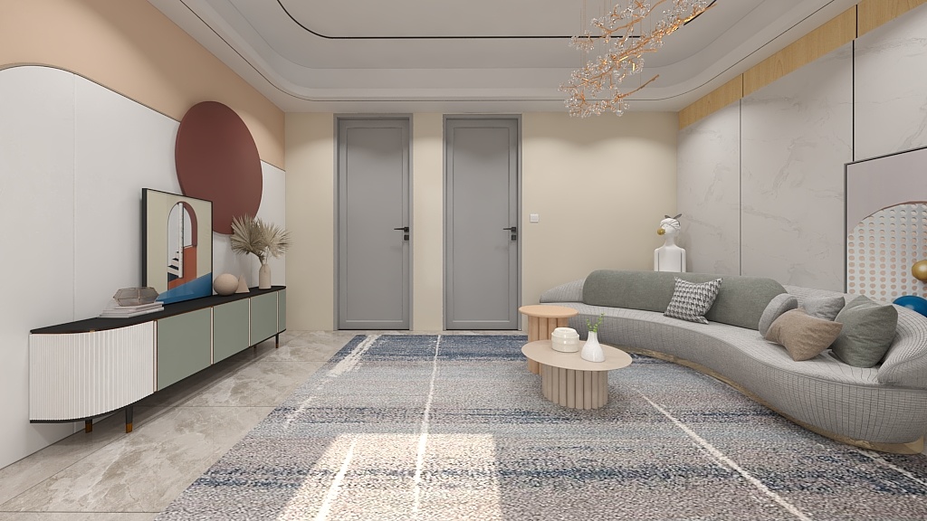 焦糖色主墻面奠定了客廳自然溫暖的基調(diào),背景墻上暖白色的弧形圖案與圓形裝飾板讓原本的墻面顯得不再無(wú)聊單一,與線條簡(jiǎn)潔的落地幾案搭配,相得益彰,構(gòu)成了一幅純粹而富有質(zhì)感的畫(huà)面。