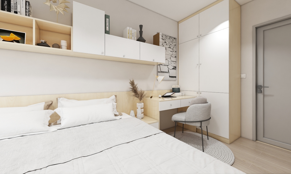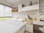 兒童房設(shè)計(jì),不僅是孩子的快樂(lè)小天地,也為偶爾來(lái)小住的父母或留宿的朋友保留一席舒適的空間。兒童房的配色上選擇了清新的白色搭配原木色榻榻米,在榻榻米旁還有著一張小書(shū)桌,對(duì)于需要做作業(yè)、學(xué)習(xí)的孩子來(lái)說(shuō),是這個(gè)寧?kù)o、采光又好的學(xué)習(xí)角,非常合適。
