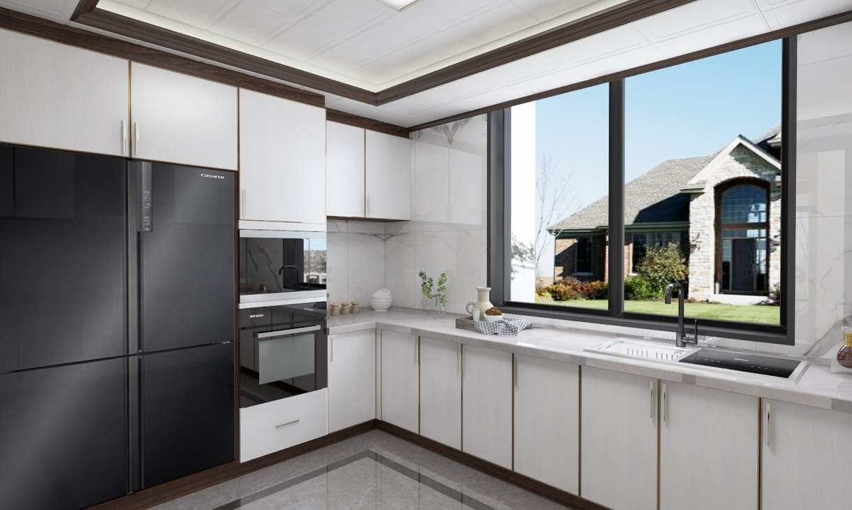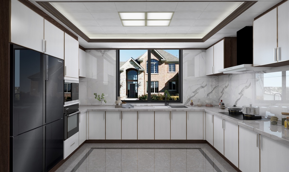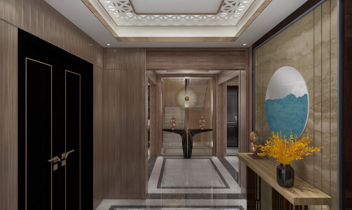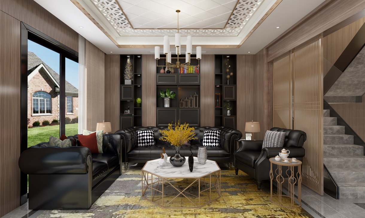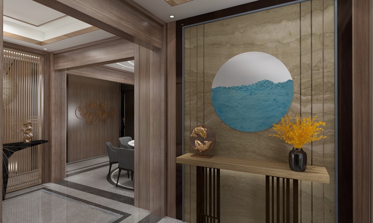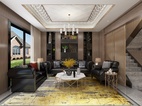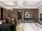 本案為室內(nèi)商住別墅小區(qū),全屋選用友邦新型材料MGRG材料,暖色金屬線條層次分明,搭配現(xiàn)代棱鏡樣式的單獨(dú)模塊。餐廳圓桌配圓頂,整體的顏色和燈光從實(shí)用到美觀由頂面詮釋在這個(gè)空間。