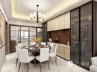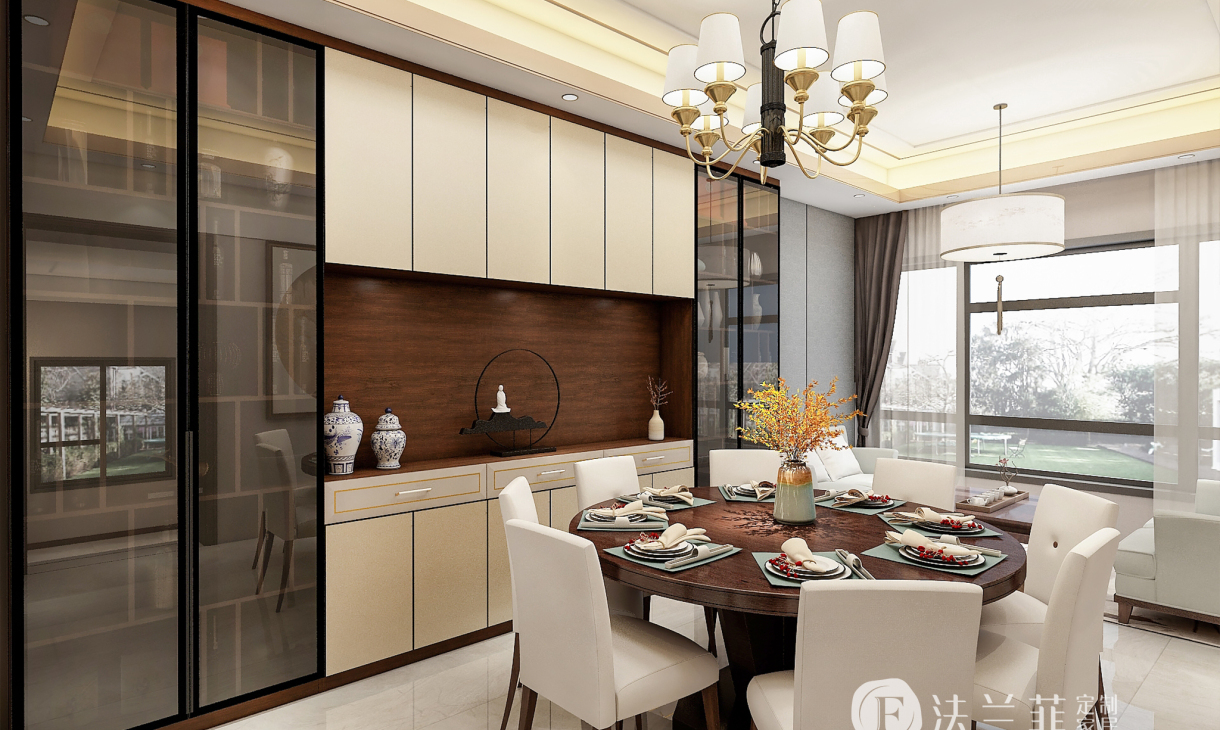 中式講究一個(gè)左右對(duì)稱之美,從中透出了它的優(yōu)雅之美。在對(duì)稱之美中蘊(yùn)含著遮而不擋、移步換景的韻味。