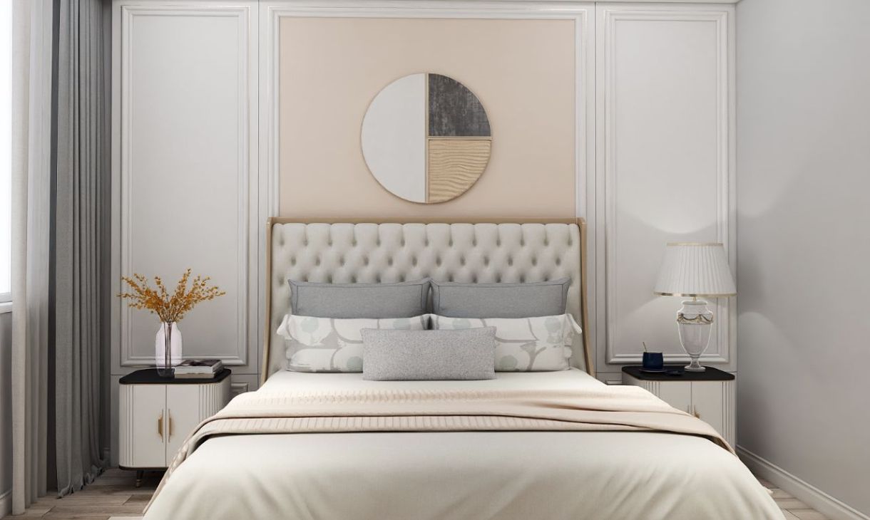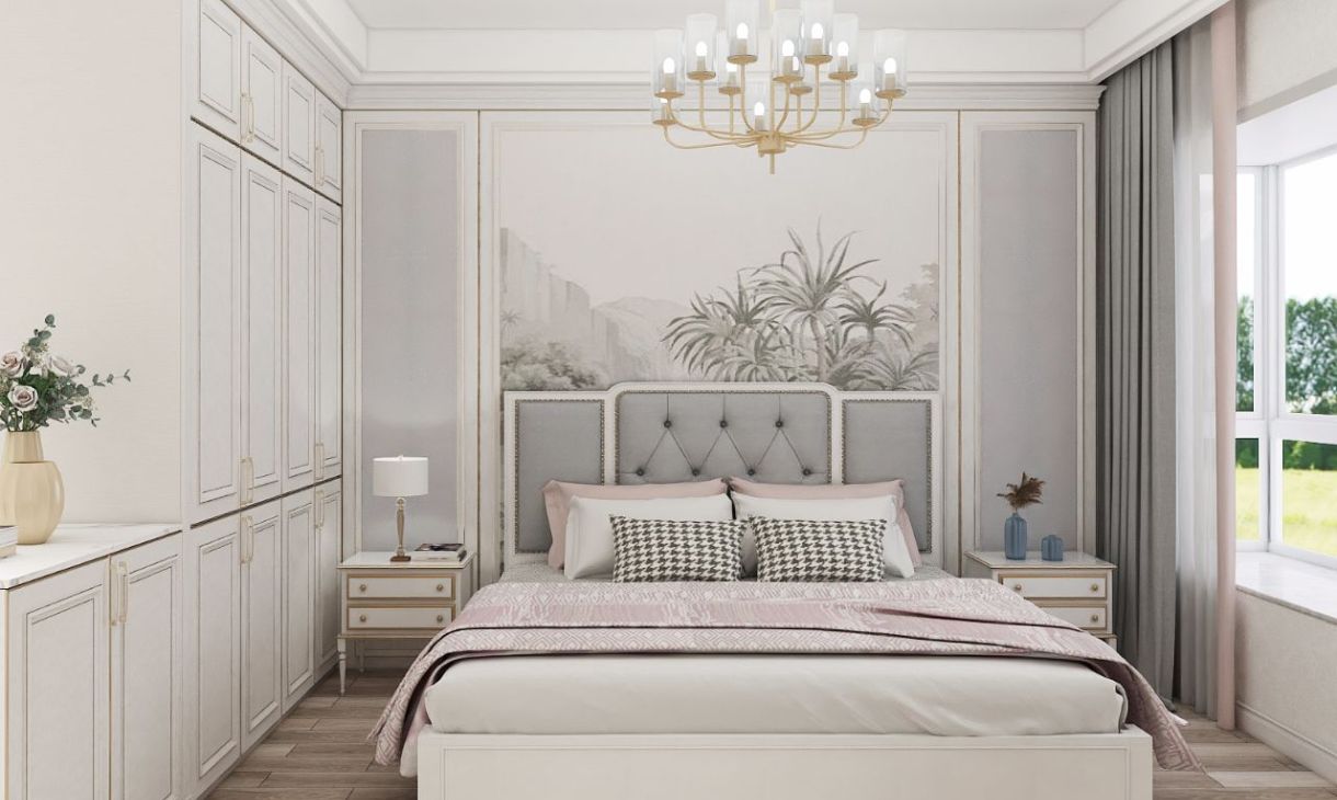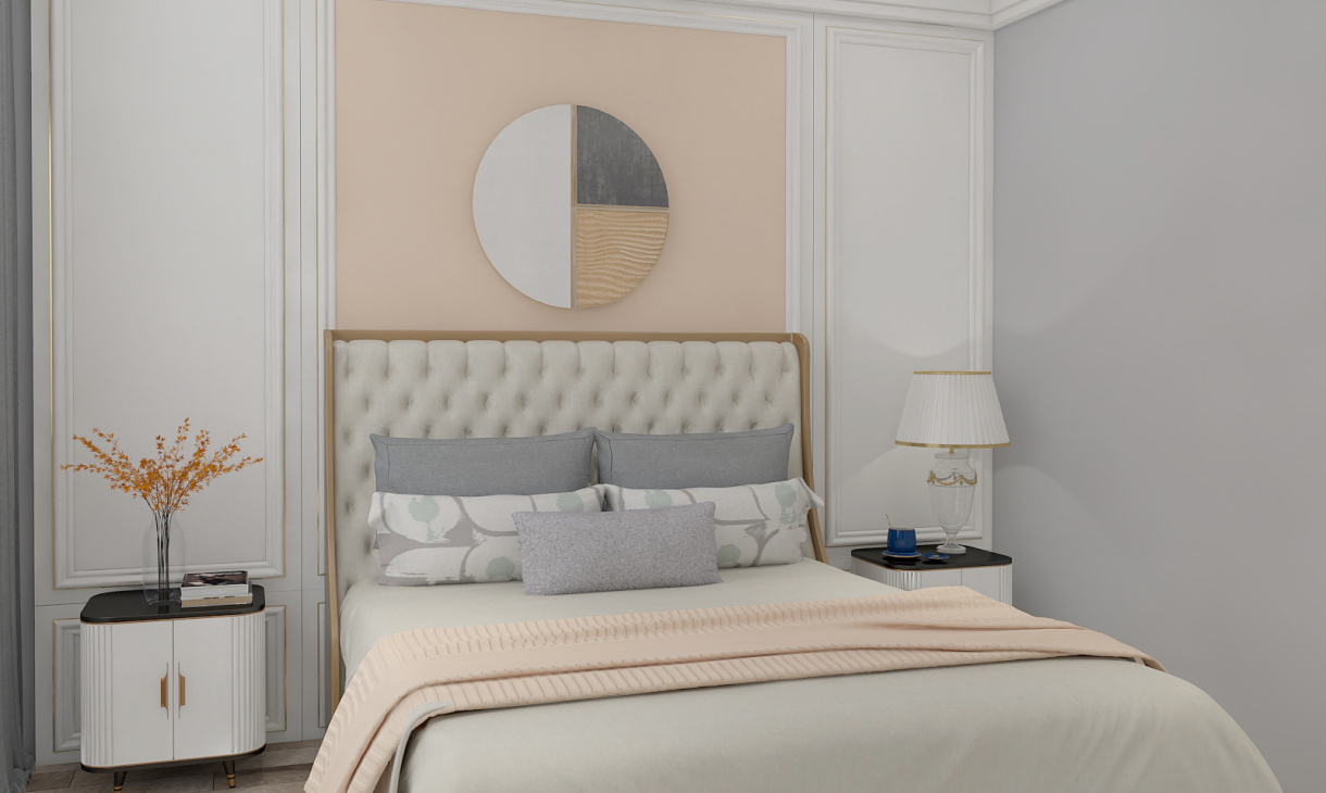 背臥較小,做客臥,簡(jiǎn)單的雙人床加護(hù)墻板