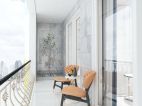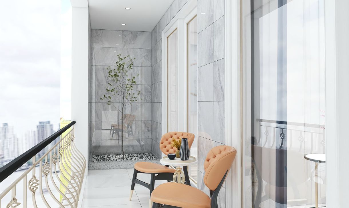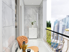 陽(yáng)臺(tái)做休閑桌椅,右邊做造景處理,左邊做擺件