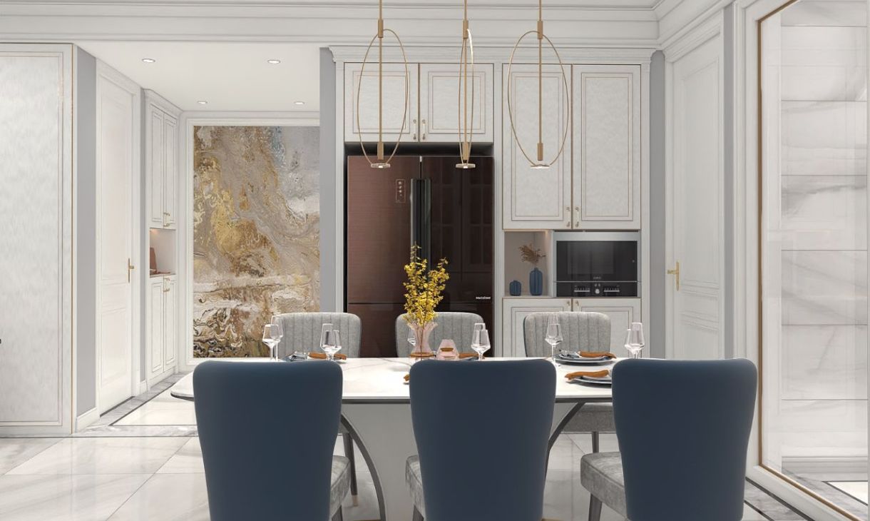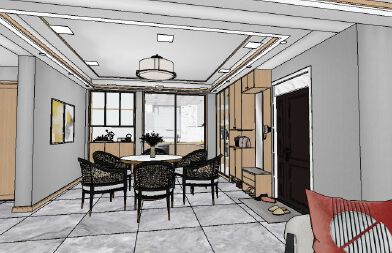 餐廳做假墻處理,和沙發(fā)背景墻平齊,解決了冰箱的擺放位置,客餐廳更整體