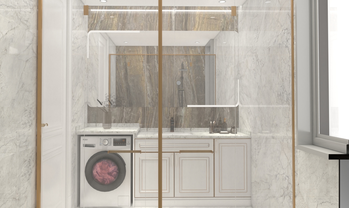 主衛(wèi)做干濕分離處理,入門做洗衣機(jī),再做面盆,使用更合理方便