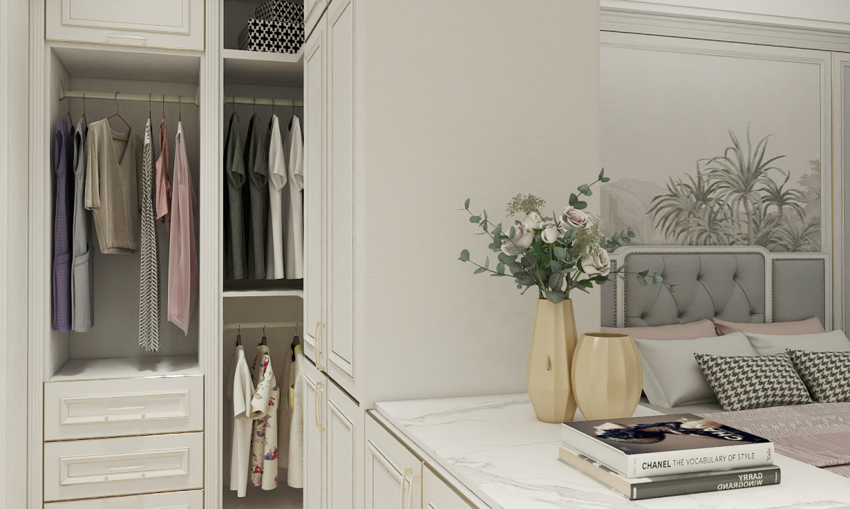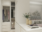 主臥與主衛(wèi)之間做了衣帽間處理,解決了衛(wèi)生間門的尷尬位置,高效的利用了空間