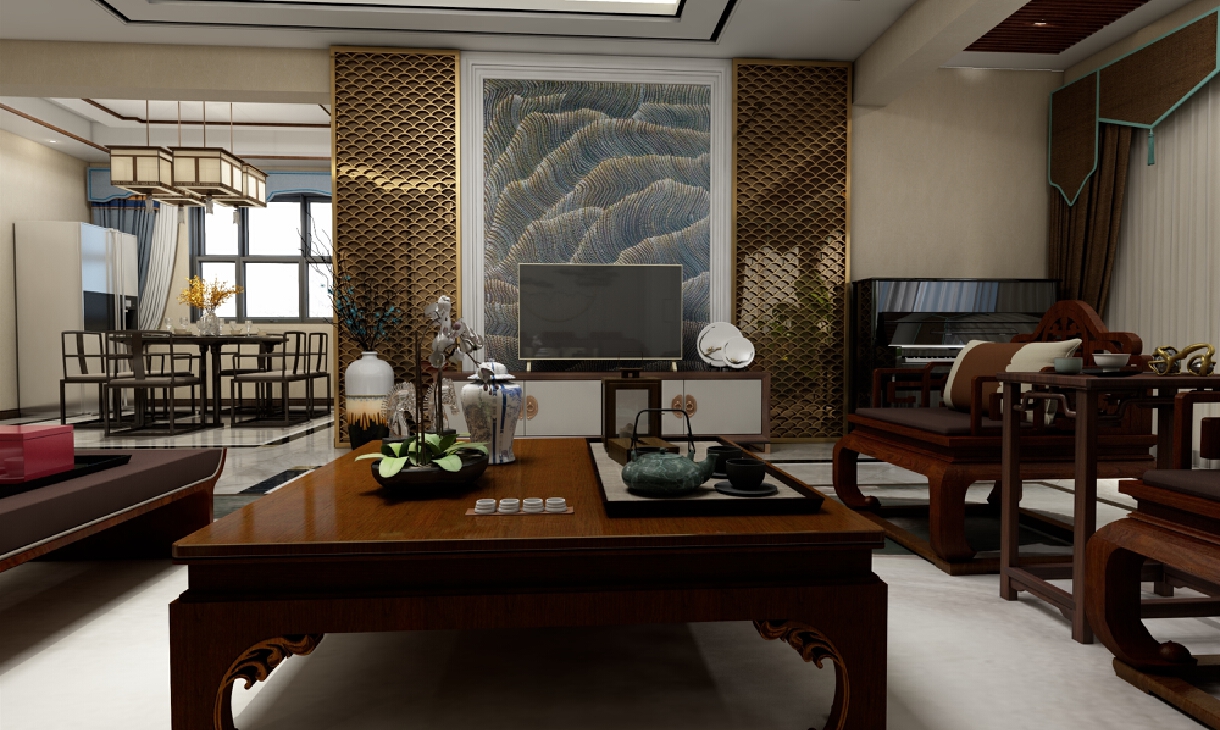 設計理念與客戶需求:風格高雅,不彰顯奢華的同時要有低調偶內涵。既體現(xiàn)中國傳統(tǒng)元素,又以現(xiàn)代人對審美的需求來呈現(xiàn)一個新中式的視覺。 戶型要求:房屋臥室都是比較小一點的,根據(jù)改造戶型滿足了客戶書房和干濕區(qū)分離的需要。 設計裝飾:客廳部分多處采用金屬材質來營造一個現(xiàn)代感,造型方面?zhèn)鹘y(tǒng)中式,兩者結合既有格調又不會顯得壓抑老舊。