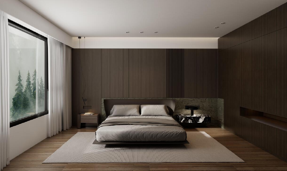 "森凈"設(shè)計(jì)理念旨在打造一個(gè)寧?kù)o、和諧且充滿自然氣息的現(xiàn)代居住空間。通過(guò)大量使用深色木質(zhì)元素,營(yíng)造出沉穩(wěn)而高雅的氛圍,結(jié)合簡(jiǎn)約的家具布置,突出空間的純凈和清新。大面積的落地窗引入室外綠意,使自然景觀成為室內(nèi)的一部分,仿佛置身于森林之中,令人身心愉悅。內(nèi)飾采用低調(diào)而精致的色調(diào)搭配,細(xì)膩的紋理與材質(zhì)呼應(yīng),營(yíng)造出一種靜謐的生活氛圍。整體設(shè)計(jì)強(qiáng)調(diào)人與自然的和諧共生,追求簡(jiǎn)約而不失細(xì)節(jié)的美感,使居住者能夠在紛繁的都市生活中找到一片寧?kù)o之地,享受舒適與放松。