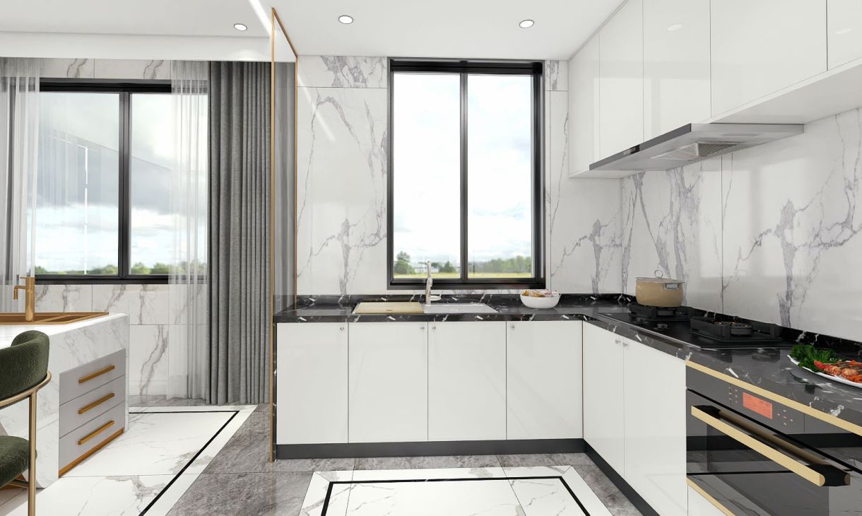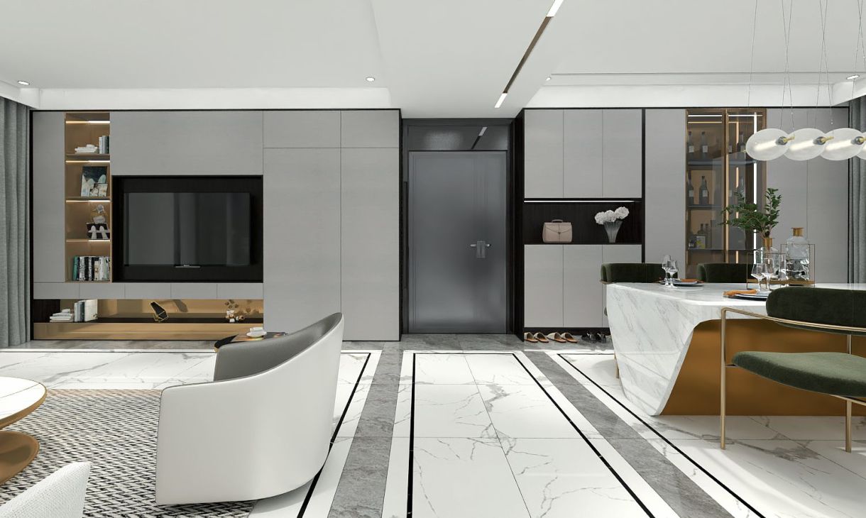 簡單的黑白灰配色加上現(xiàn)在最流行的金屬配色,體現(xiàn)出現(xiàn)代風(fēng)格追求的時(shí)尚與潮流