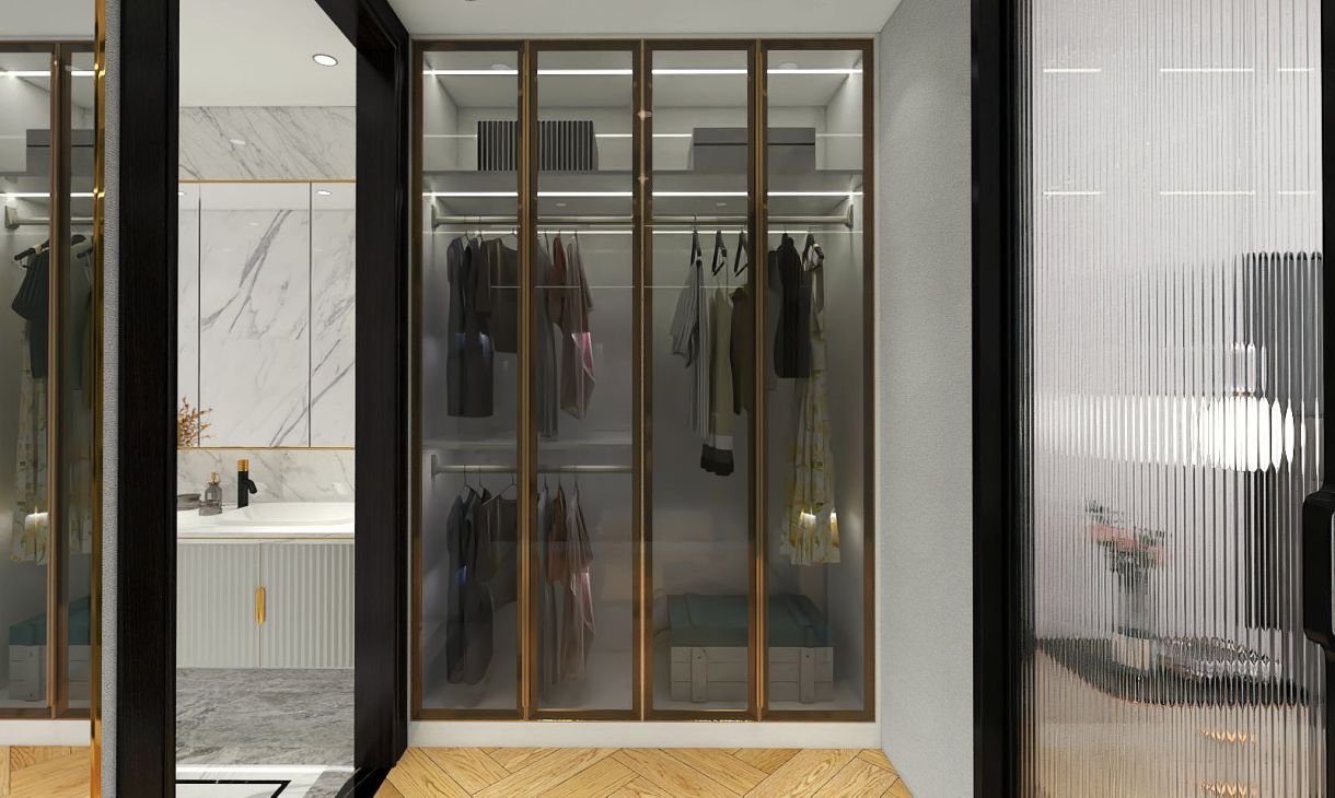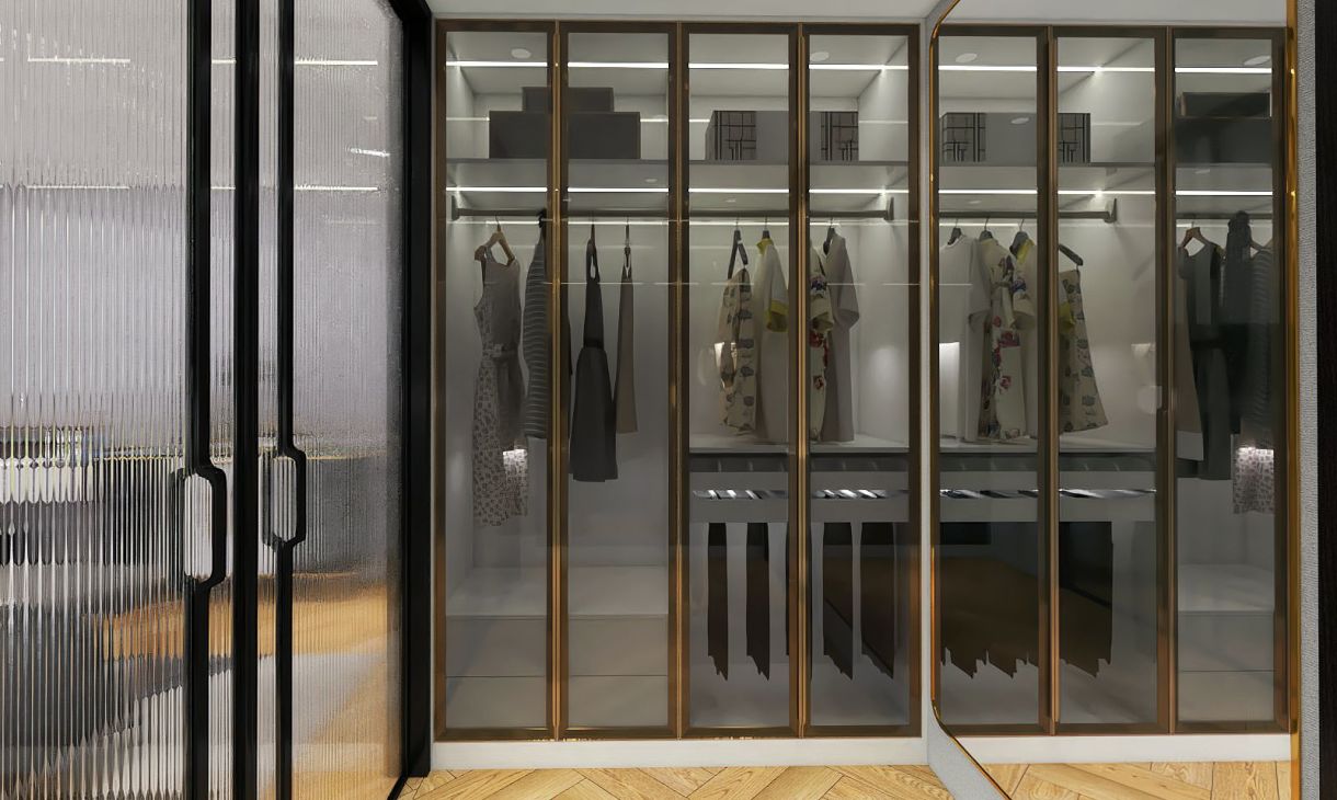 全部做了玻璃門,柜內(nèi)做了燈光,讓你可以最快的找到今天你想穿的衣服,也避免了灰塵的煩擾