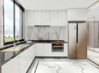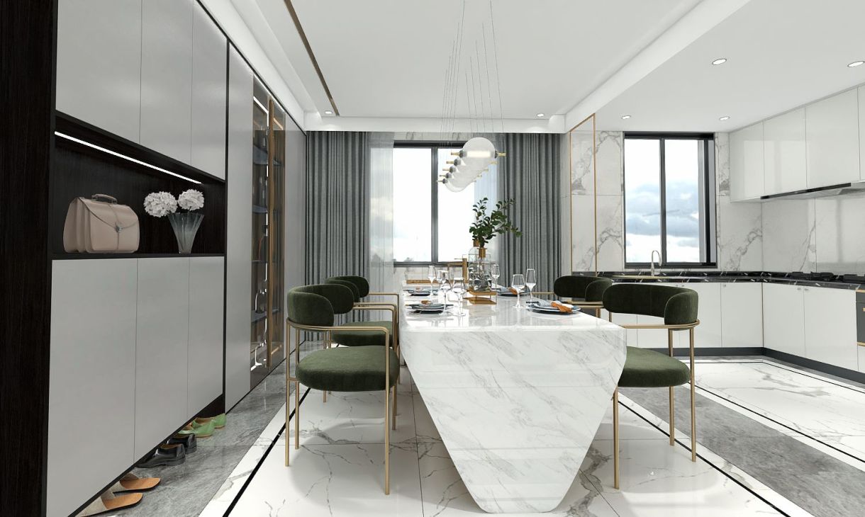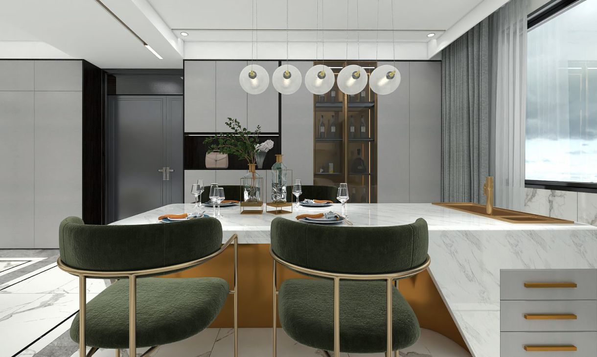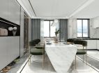 灰黑配色的酒柜加上白色大理石餐桌,點(diǎn)綴金屬配色,簡約而不簡單